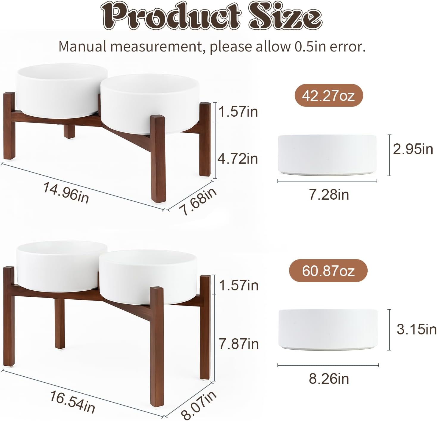 - UPGRADED ACACIA WOOD SHELF: Compared to the usual wood stand, this feeding bowl uses higher quality acacia wood, which not only enhances the overall stability and durability, but also the natural wood grain and warm tone of the wood stand can beautify the home space. The acacia wood stand has better durability and maintains a stable temperament even in humid environments