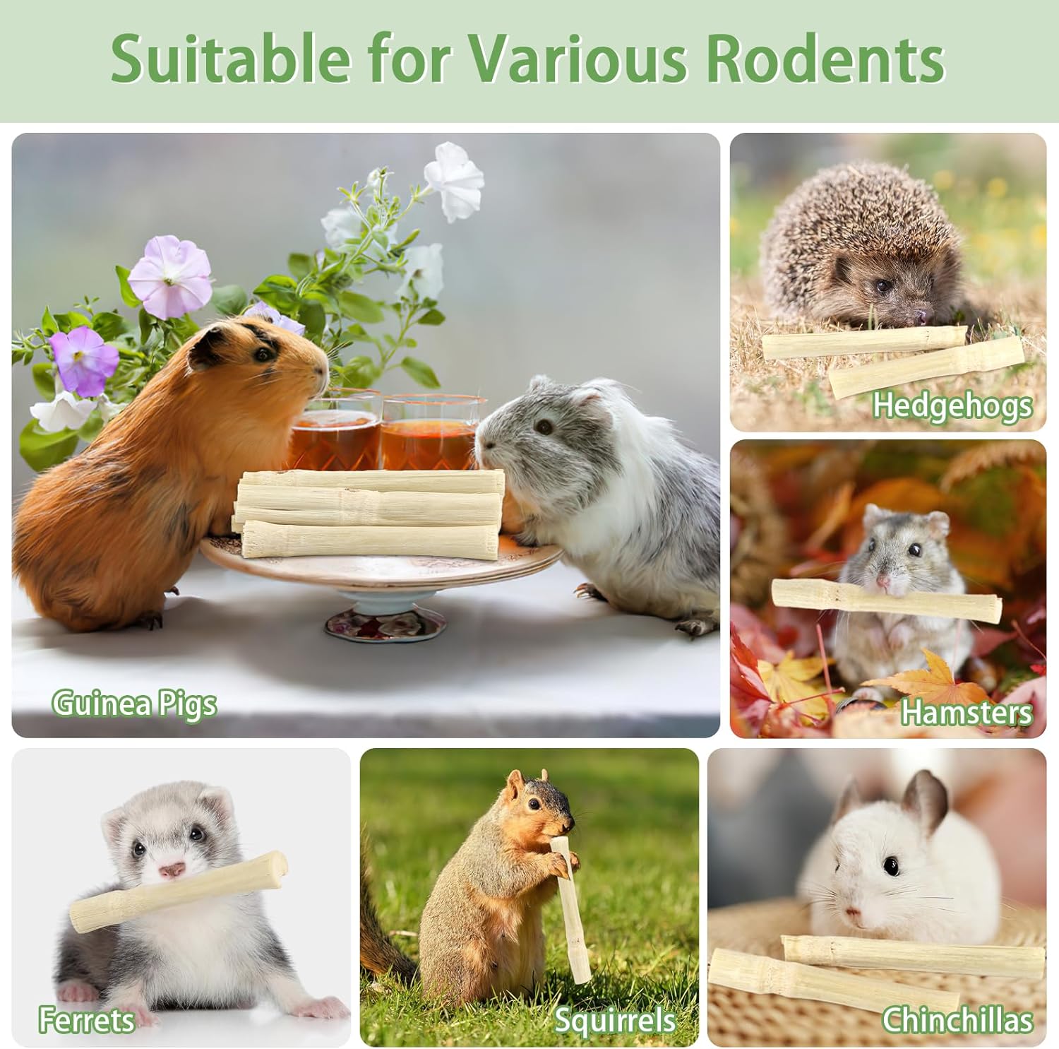 - Ideal Chew Toy: With moderate hardness, sweet bamboo chews are perfect for rodents to gnaw on, helping promote healthy teeth growth and prevent overgrowth-related issues, while promoting digestion
