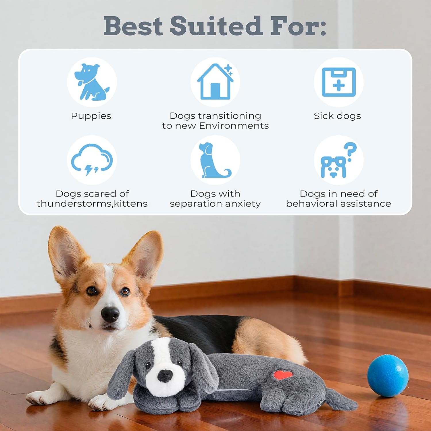 - PUPPY MUST HAVES: It's a puppy buddy. Heartbeat toys are an all-natural, medication-free way to relieve your dog's anxiety. For puppies, dogs that are sick, dogs that have separation anxiety, dogs that are afraid of fireworks, thunder and lightning, this can be a good investment.