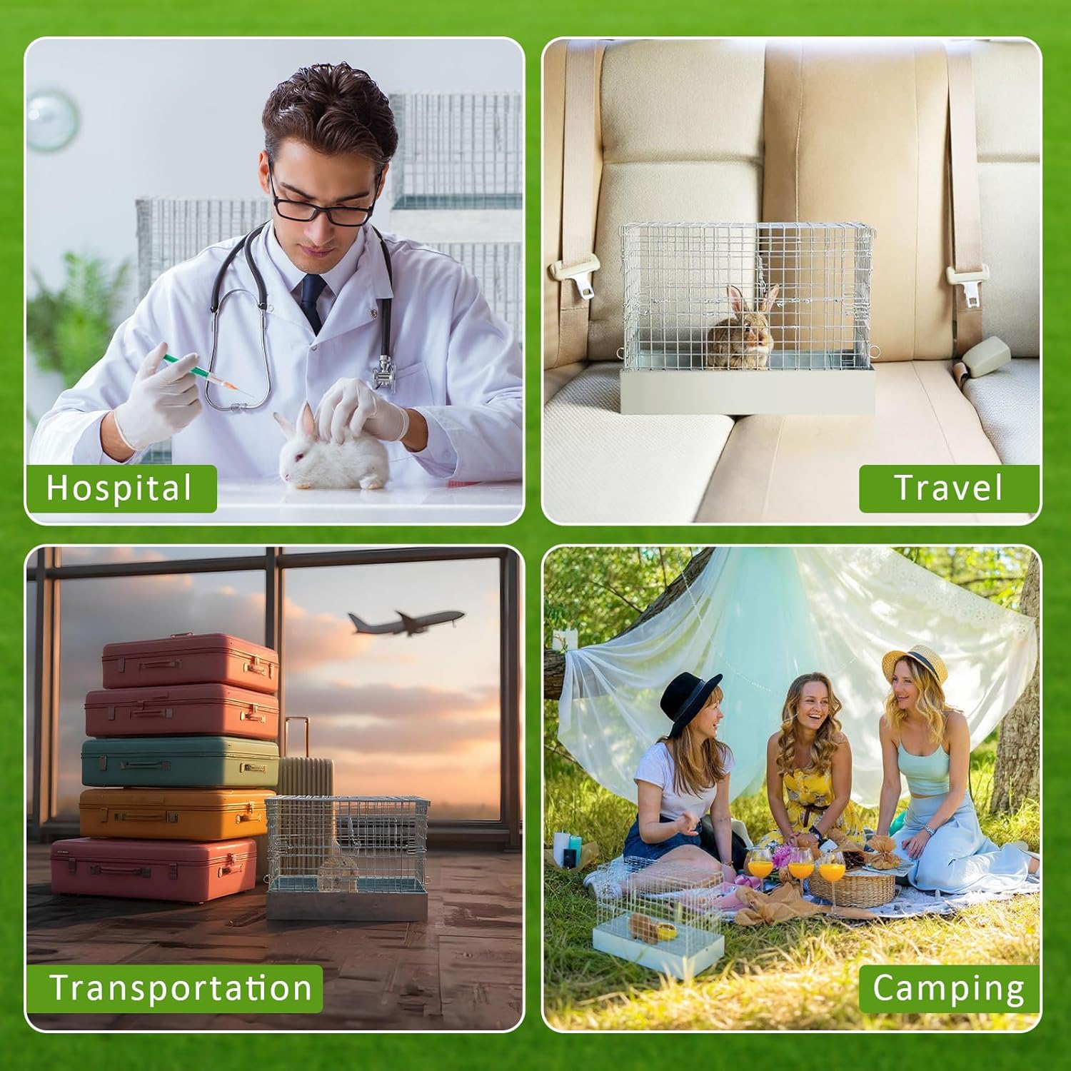 - Easy Transport with Carry Handles: designed for both short trips and extended outings, this bunny transport cage comes with sturdy handles on both sides for effortless carrying. Remove the divider to create a larger shared space when transporting more than one rabbit at a time. Ideal for travel, vet visits, outdoor events, or even as a temporary indoor pen