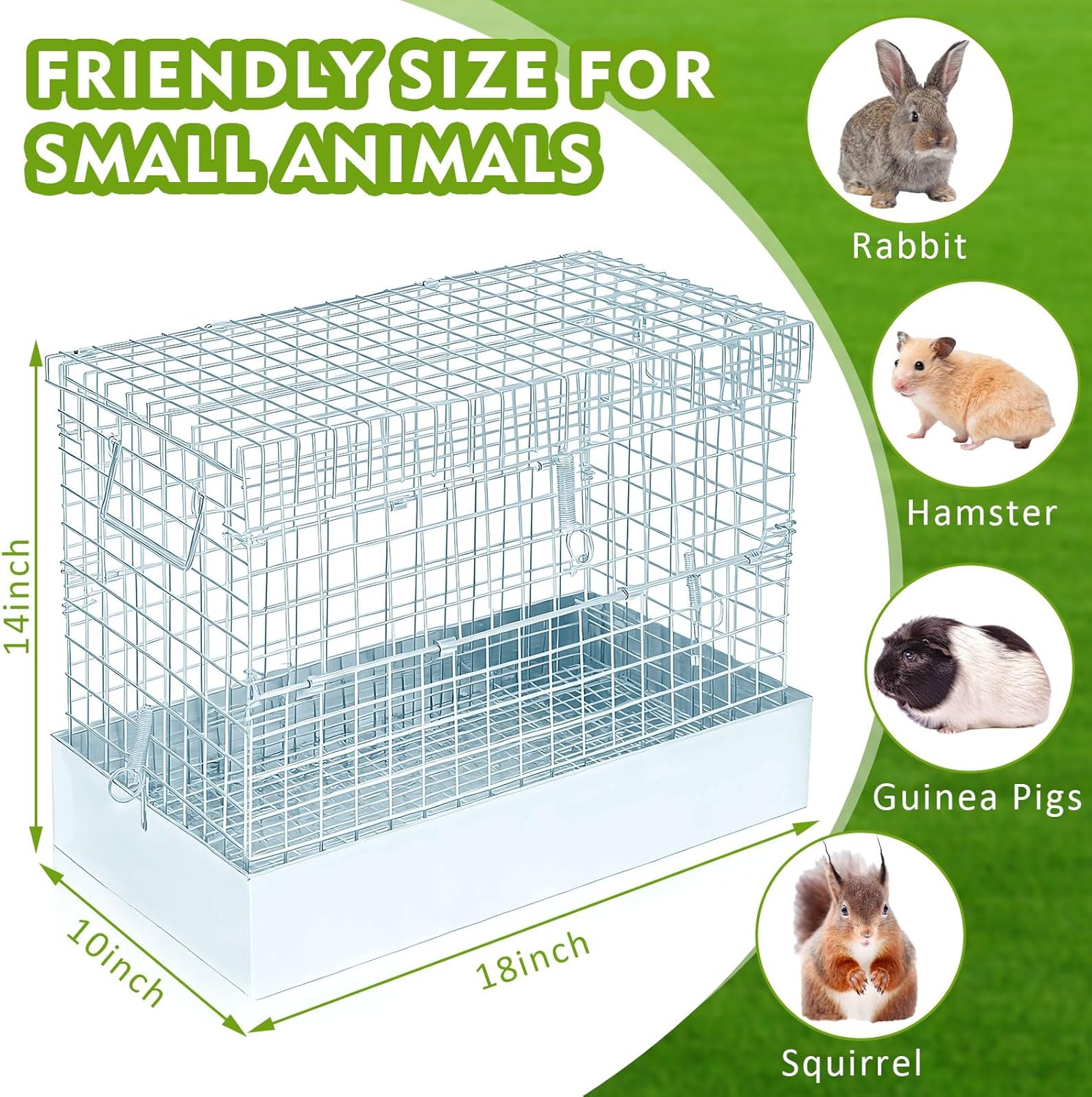 Folding Rabbit Cage, 18 x 10 x 14 in Portable Bunny Carrier with Tray and Handles for Transport, Travel or Temporary Housing, Indoor Outdoor Pet Habitat Animal Enclosure