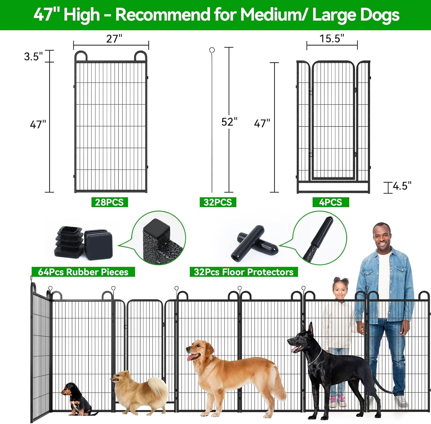 Dog Playpen Outdoor 32 Panels Heavy Duty Dog Fence 47" Height Anti-Rust with Doors Portable for RV Camping Yard, Total 71FT, 406 Sq.ft, Snowy Black