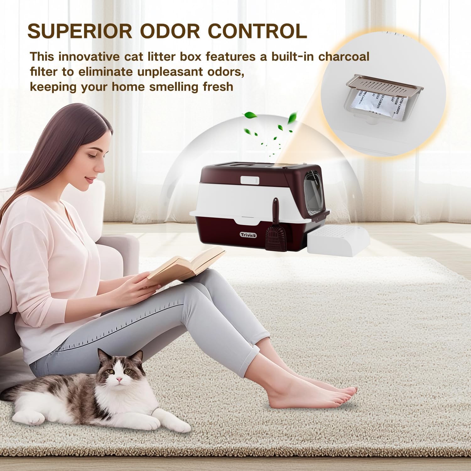 - Versatile Design – Functions as either a semi-enclosed or fully enclosed litter box, featuring a deodorizing filter to minimize odor and moisture buildup.