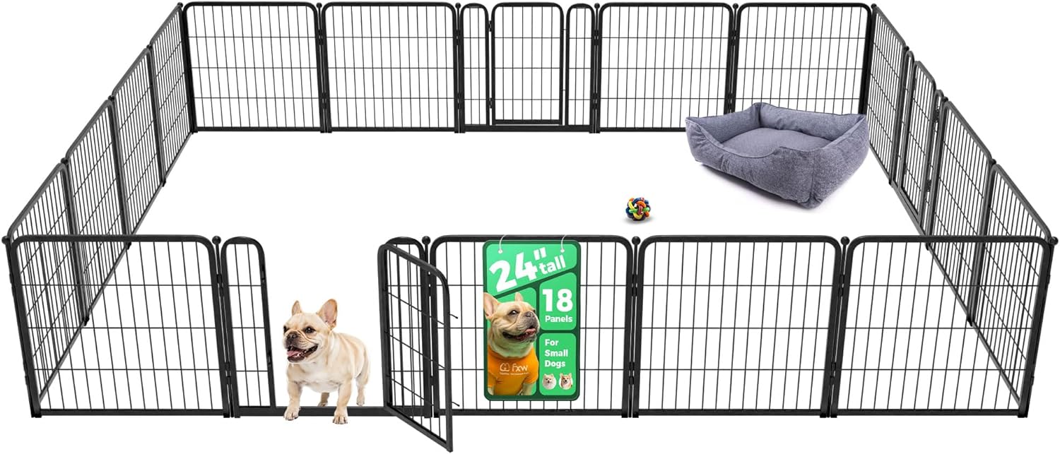 FXW Homeplus Unleashed Indoor Dog Playpen - Stress-Free and Safe Play, Heavy Duty 24 Inch 18 Wire Panels Dog Pen for Puppy and Small Dogs, Black│Patented