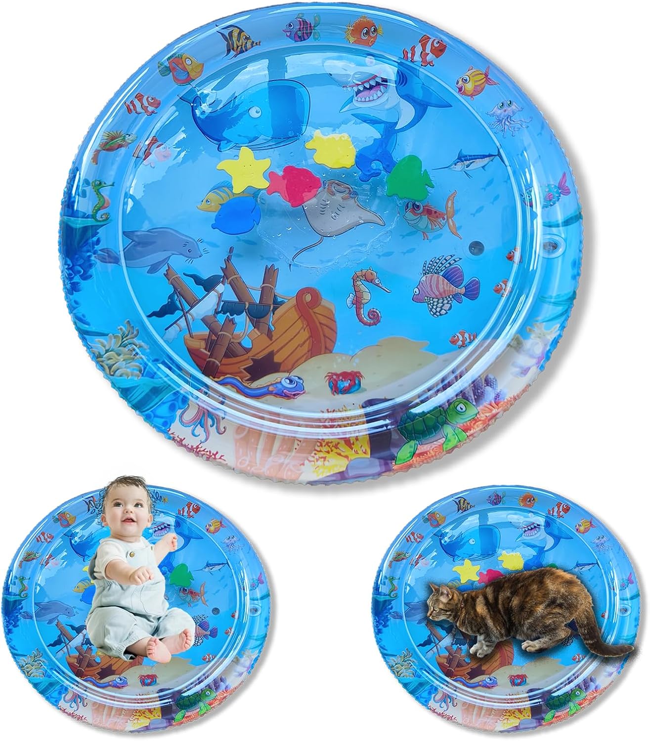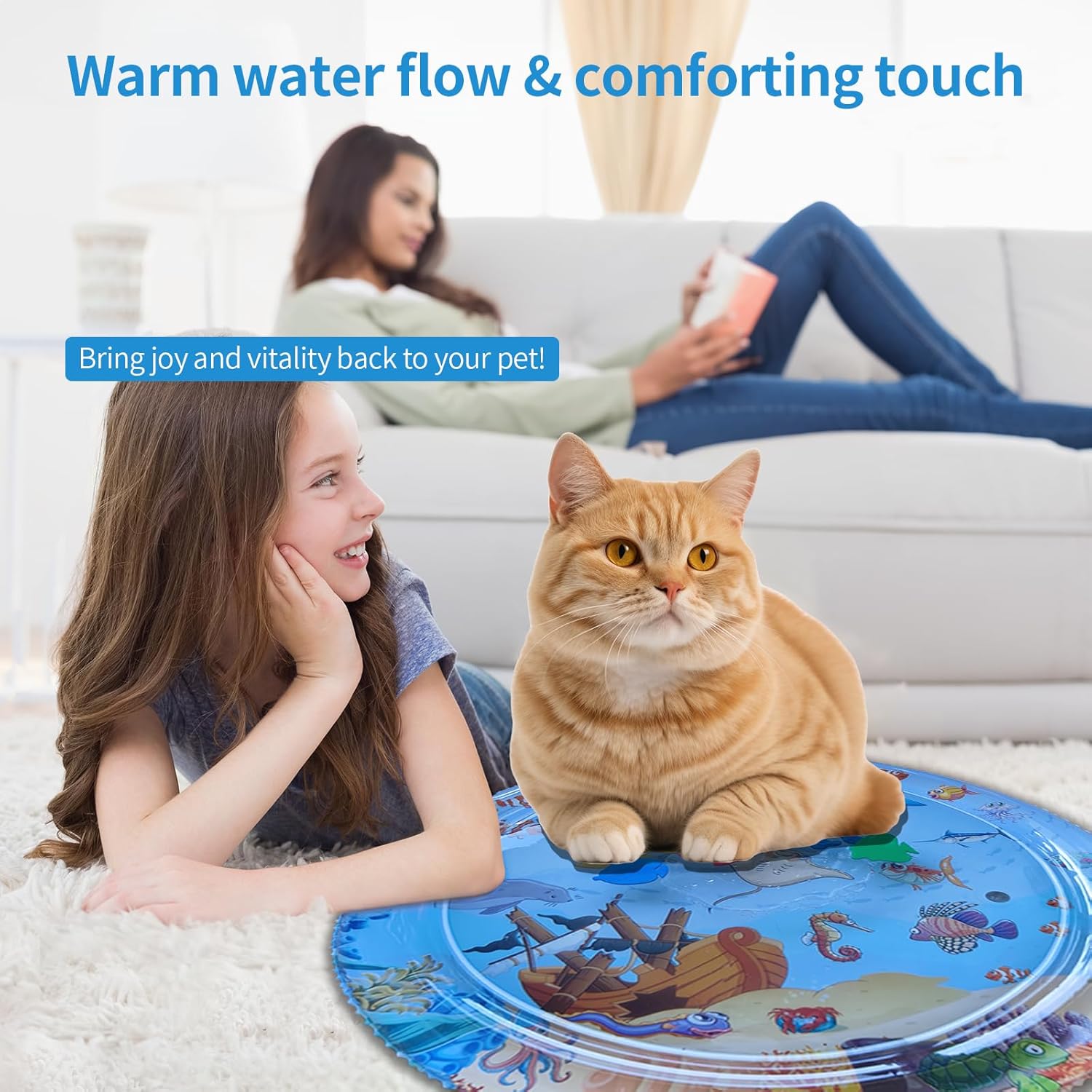- 【Water pad for cats:】The cat water mat features cutting-edge fourth-generation tear-resistant technology, designed to withstand even the most active kitties. This innovative design prevents your furry friend's claws from damaging the cat water play mat, addressing the common issue of not keeping your pet's nails trimmed. Allow your cats to splash around on the water sensory play mat and enjoy endless entertainment without worry.